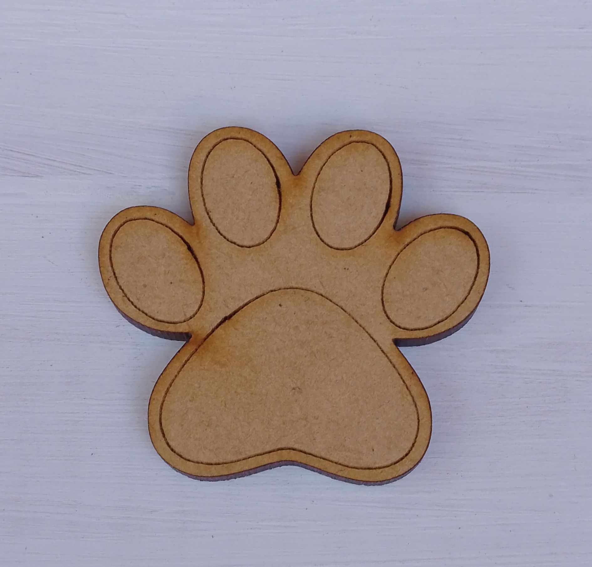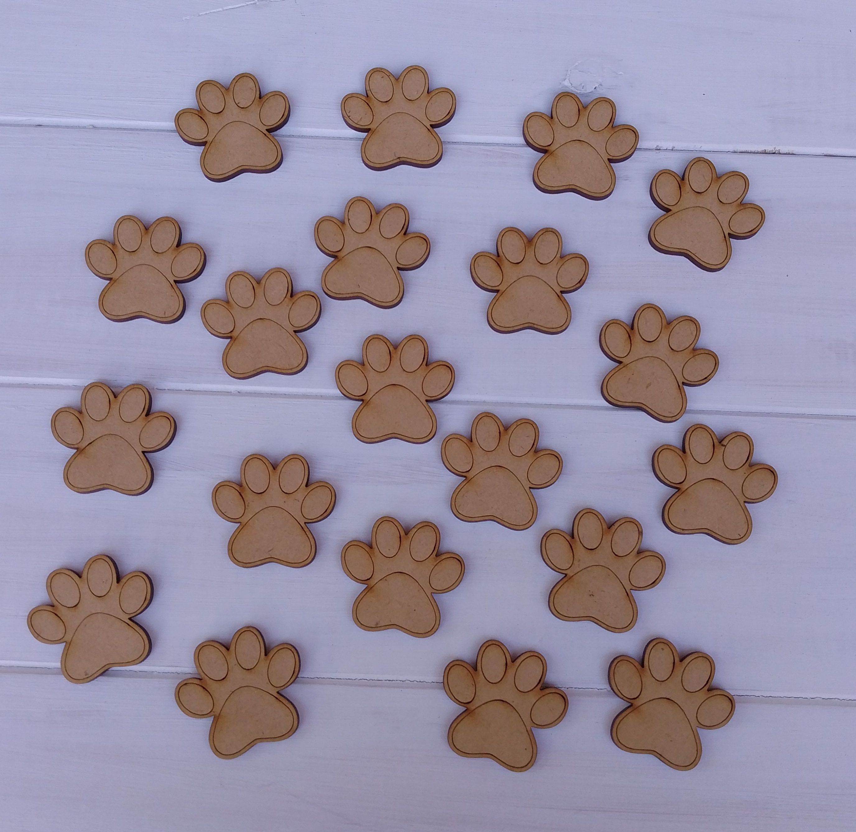 🐾 Huellitas de perro 🐾 en MDF (fibrofácil) de 3 mm de espesor, color natural sin pintar.