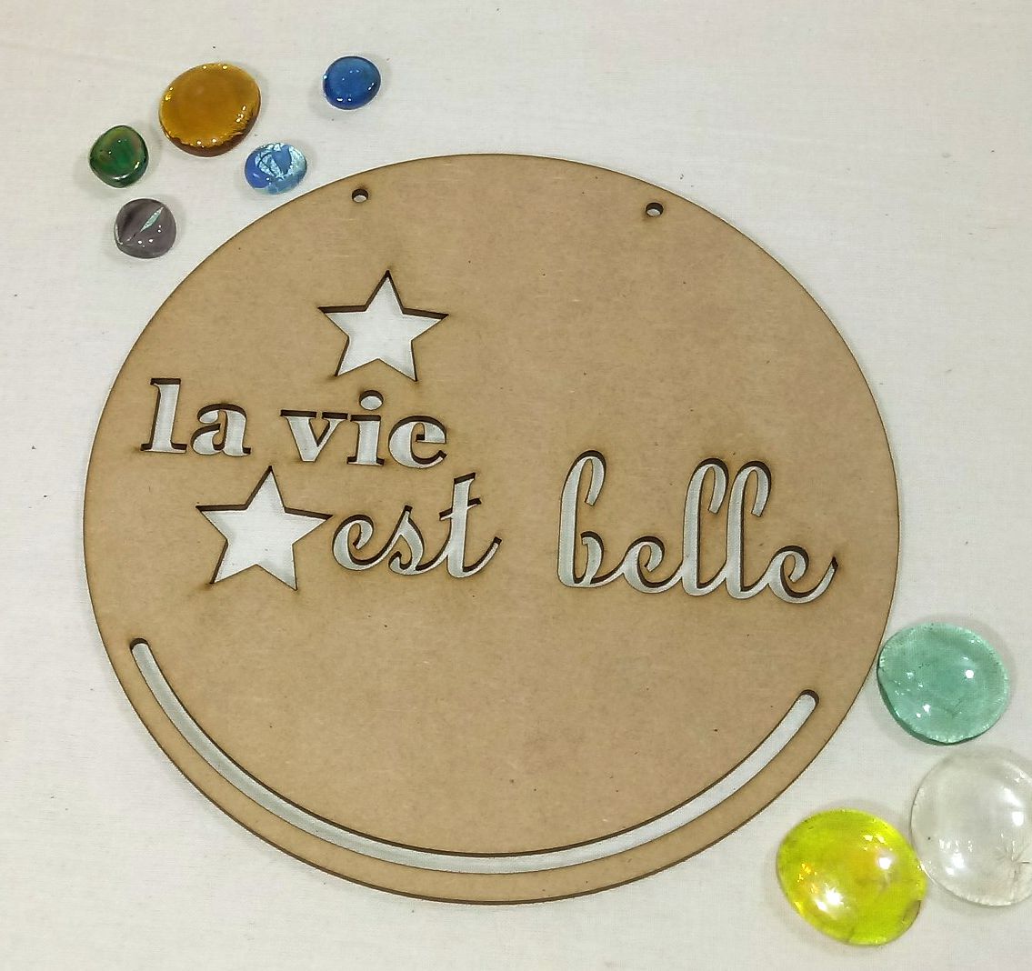 Colgante circular para macramé con frases y orificios inferiores, de 20, 25 y 30 cm en MDF (fibrofácil) de 3 mm de espesor, color natural sin pintar.