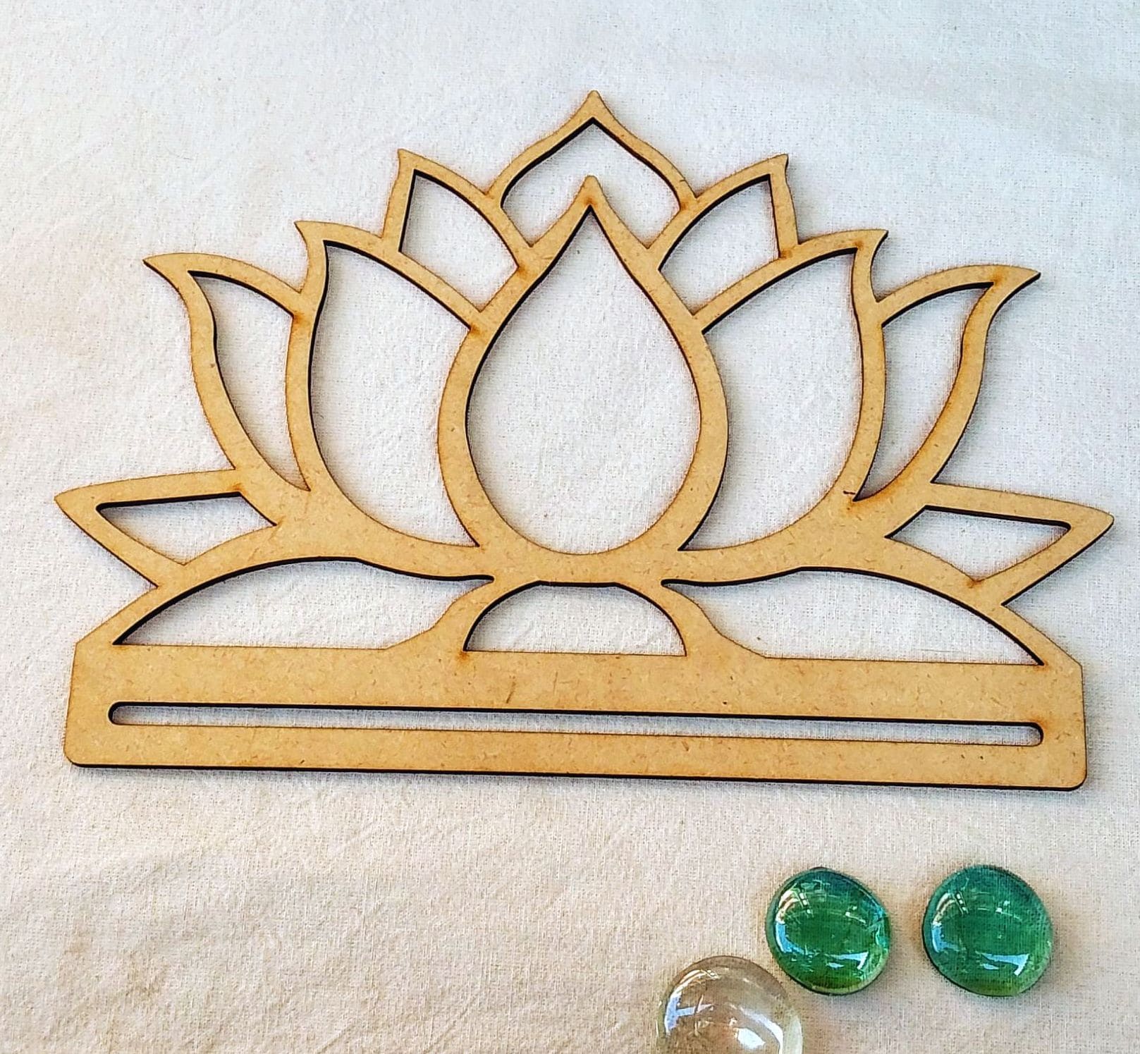 Flor de Loto calada de 25.5 x 18 cm, en MDF (fibrofácil) de 3 mm de espesor, color natural sin pintar.
