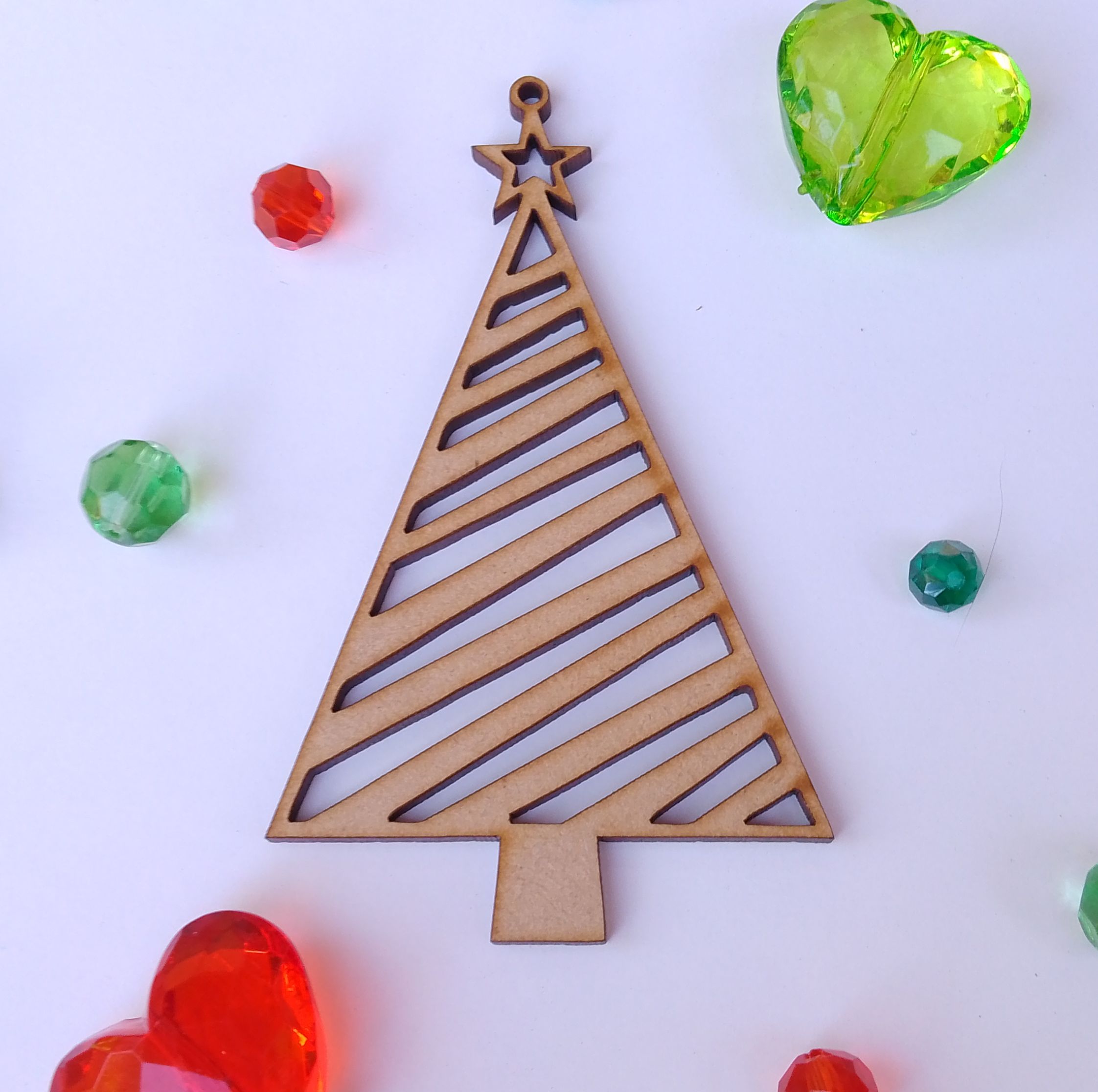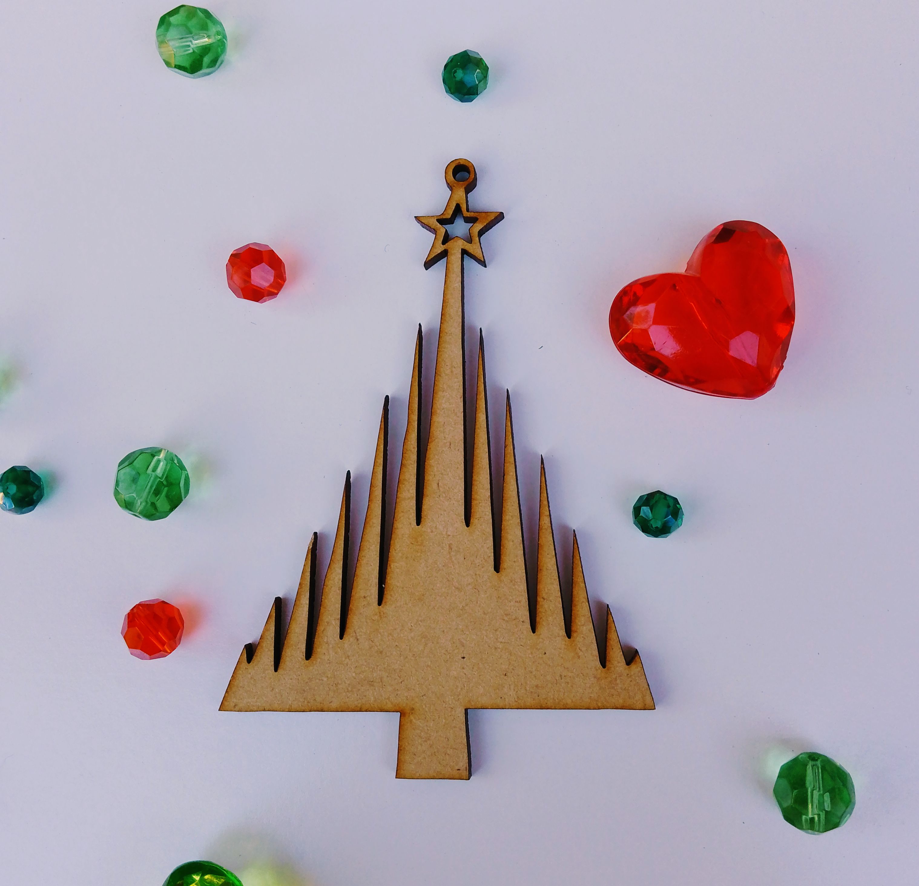 En MDF (fibrofácil) de 3 mm de espesor, color natural sin pintar.